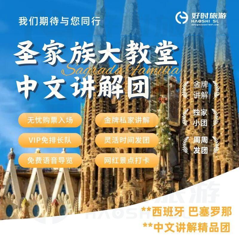 西班牙巴塞罗那圣家堂含门票免排队中文导游讲解拼团